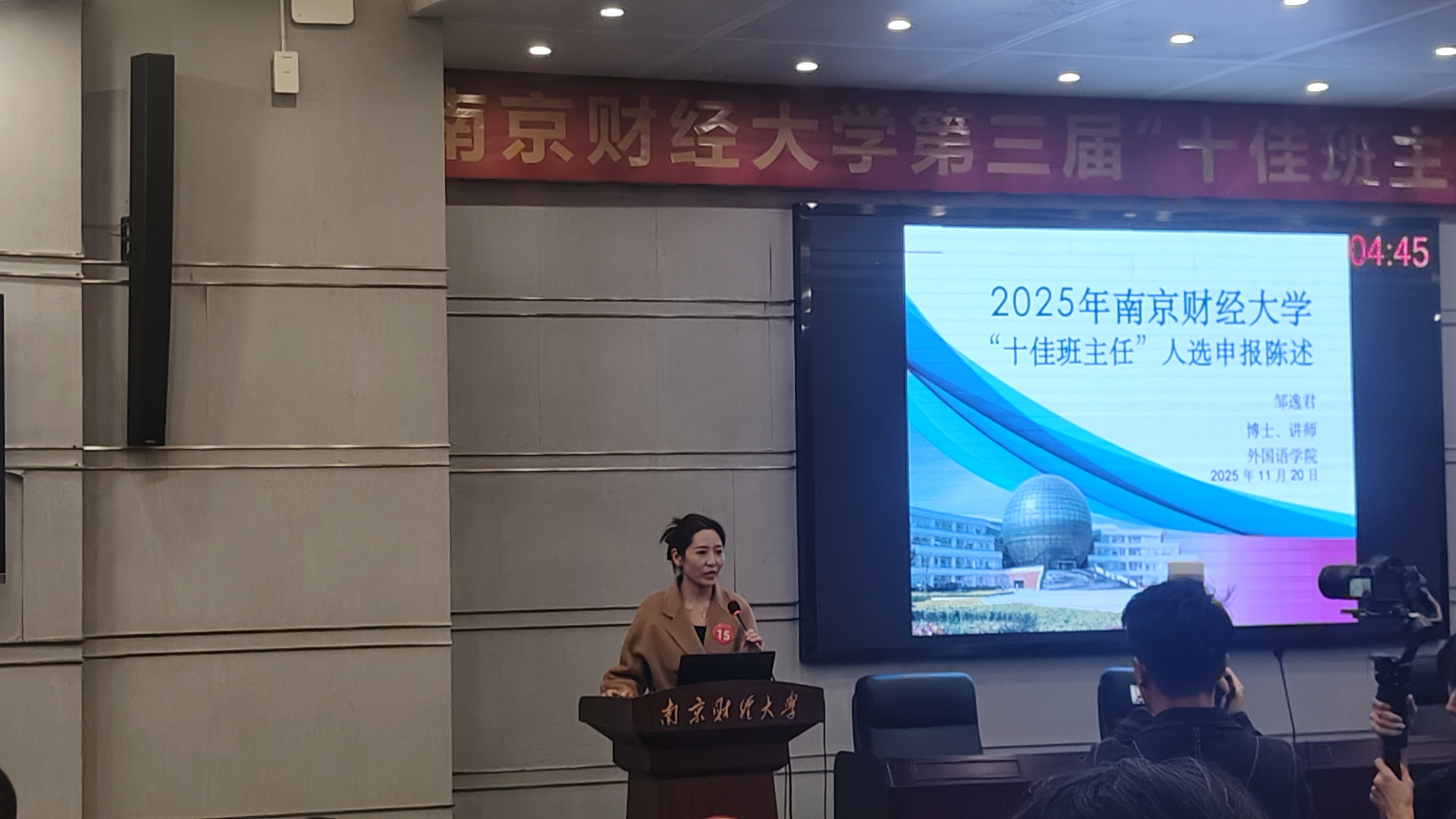 11月20日下午,我校第三届“十佳班主任”展评会在仙林校区行政楼二楼报告厅举行。党委常委、副校长刘衍民出席展评会,党委学生工作部部长、学生处处长韩力争,教师(教学)发展中心主任阚京华,党委教师工作部副部长、人事处副处长何海新,教务处副处长(挂)、第二届“十佳班主任”获得者刘余,首届“十佳班主任”获得者张郑熠担任本次展评会评委。党委学生工作部、学生处思政科相关工作人员,各学院班主任、辅导员及学生代表到场观摩学习。展评会由经济学院辅导员潘怡主持。