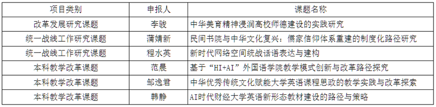 在各部门申报的基础上,经学校组织专家评审,共遴选出2025年校级MBA教学案例课题18项、改革发展研究课题12项、统一战线工作研究课题16项以及本科教学改革课题75项。其中,外国语学院获批改革发展研究课题1项、统一战线工作研究课题2项以及本科教学改革课题3项。学院将以此为契机,持续推进有组织科研,争取不断提升各类各级科研项目申报命中率。