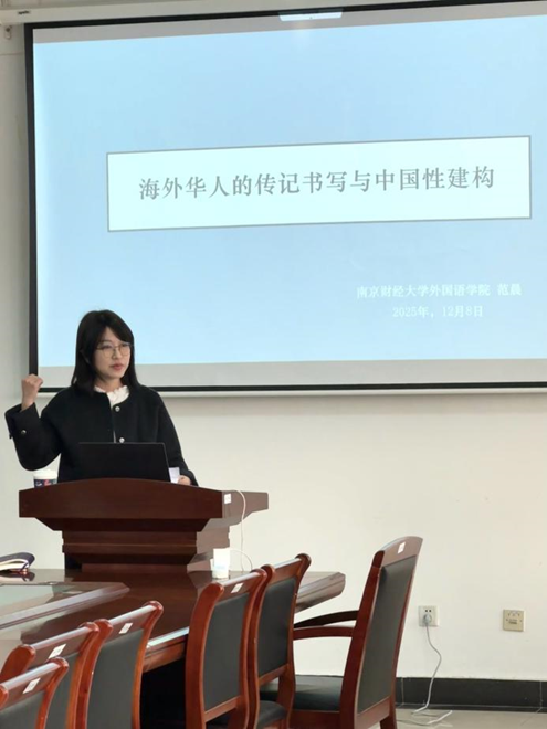 2025年12月8日下午,我院在德政楼308会议室举行“一周一讲”学术讲座(第二期)。此次讲座邀请了外国语学院范晨博士为主讲嘉宾,讲座题目为“海外华人的传记书写与中国性构建”。