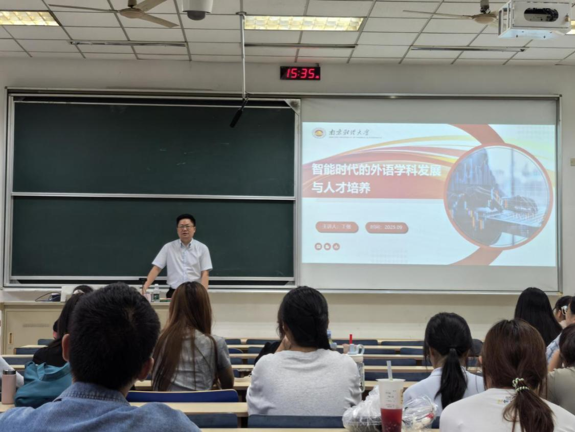 讲座伊始,丁院长(主持工作)深入剖析了人工智能技术的迅猛发展给传统外语教学带来的冲击与挑战。他强调人工智能的发展并非危机,而是前所未有的历史机遇。他强调,外语学科必须跳出单一的“语言技能训练”窠臼,进行战略性重新定位。在AI能够高效处理基础语言任务的今天,外语人的核心竞争力在于与AI共舞,而非与之对抗——教学需深度融合AI技术进行创新,学习内容则要拓展至文化、科技、国际政治等广阔的跨学科领域。