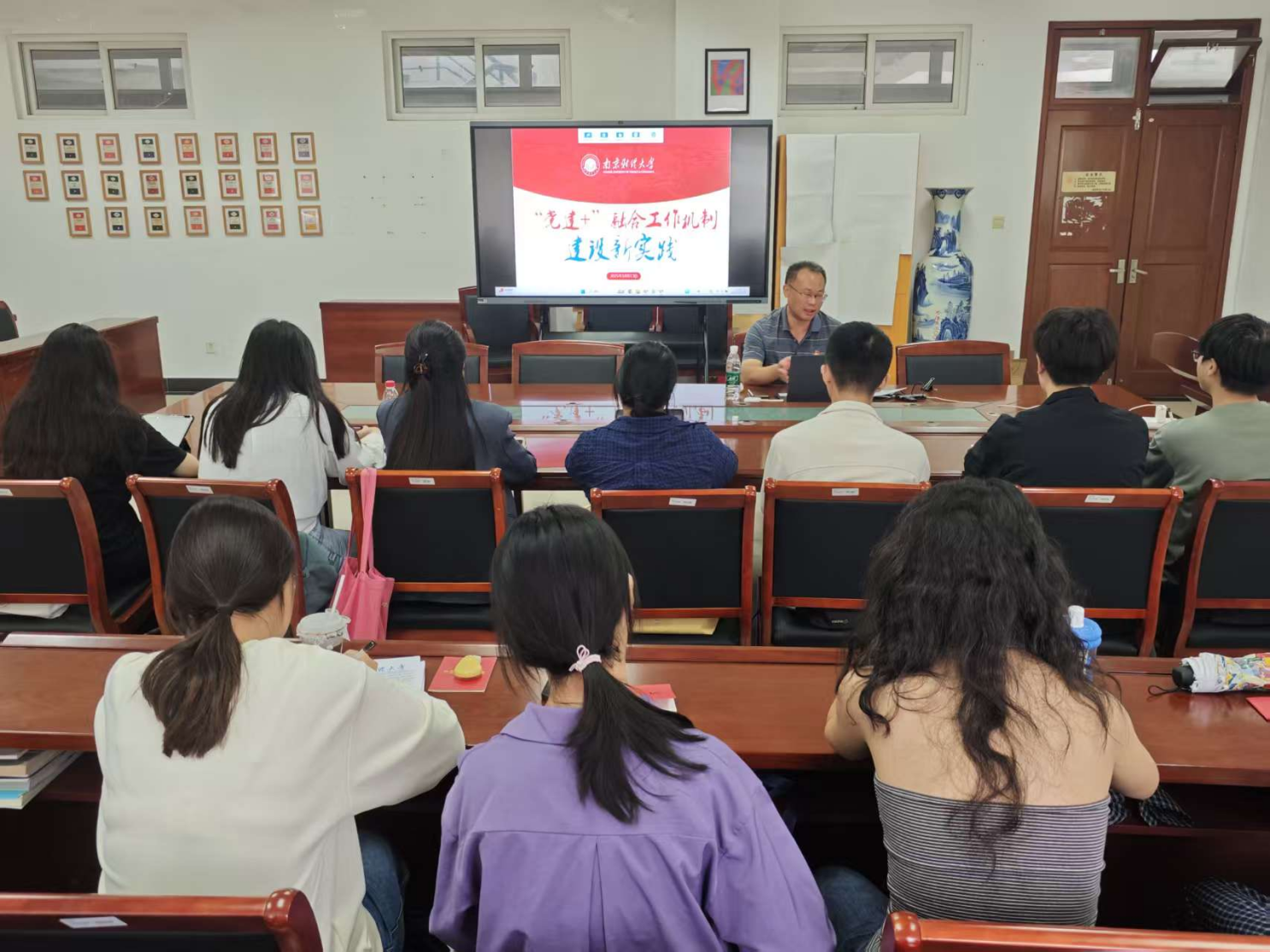 首先,陆斌书记结合学校及外国语学院“党建+”工作的生动案例,系统阐释了“党建+”融合机制的核心内涵与实施路径。他指出,“党建+”融合工作机制是以党建为引领,将党建工作与业务工作、学生培养、科研创新等深度结合,通过“党建+学术科研”“党建+文化育人”“党建+实践服务”等模式,实现党建与事业发展同频共振。他以研究生党支部廉洁诗词翻译朗诵大赛活动为例,分享了学院将廉洁教育与外语专业能力培养相结合,实现“党建+专业实践”的典型成果。这项活动既强化了学生的党性修养,又提升了其翻译与跨文化传播能力,充分体现了“学贯中外、语出惊人”的育人理念。他提到,此类实践不仅是落实党和国家“一融双高”要求的具体举措,更是培养“又红又专、德才兼备”青年人才的有效路径。