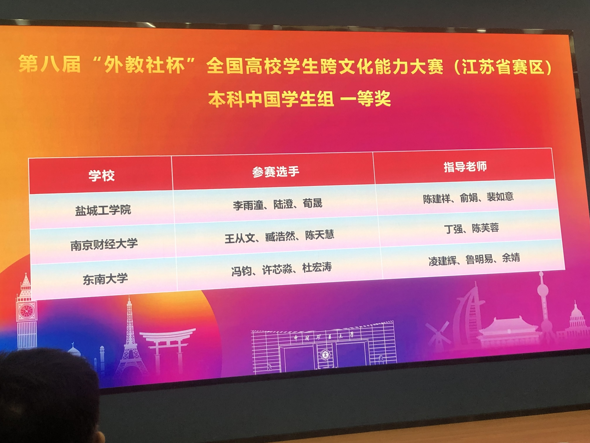 10月24至26日,第八届“外教社杯”全国高校学生跨文化大赛江苏省赛区比赛在中国矿业大学圆满落幕。由外国语学院丁强副院长(主持工作)和陈芙蓉老师指导的王从文(国实2401班)、臧浩然(英专2401班)、陈天慧(贸经2401班)三位学子以“The Fusion Bottle”为题,进行了商务沟通案例的展示。他们凭借扎实的跨文化理论素养、沉着冷静的的出色现场表现与对东西方文化差异的深刻解读,从全省49支本科生参赛队伍中脱颖而出,斩获江苏省赛区一等奖。