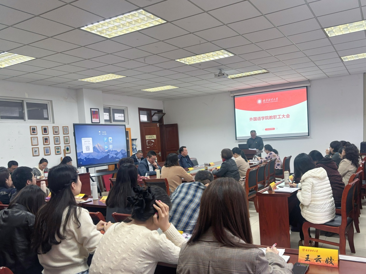 4月9日下午,外国语学院在德正楼308会议室,组织召开全体教职工大会,主题是师德师风教育学习。会议由院党委书记陆斌主持。